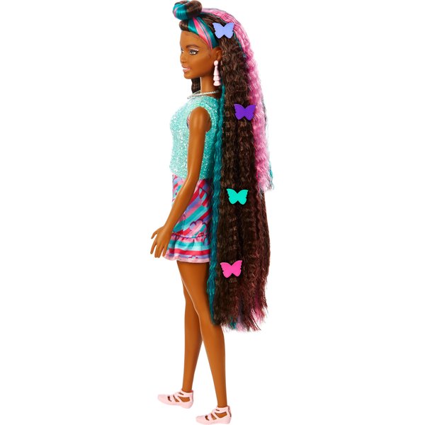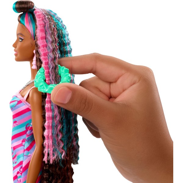 Model ten powstał w oparciu o popularną lalkę Barbie sprzed 30 lat. Nowoczesna odsłona Barbie posiada bardzo długie włosy, bajecznie kolorowe ubranka i zestaw akcesoriów do włosów, umożliwiający tworzenie całkiem nowego uczesania. Dziecko uczy się kreatywności, ćwiczy zręczność i może dowolnie bawić się modą dzięki dodatkom. Odmieniają one każdą stylizację, nadając jej niepowtarzalny charakter. Nieskończone możliwości tworzenia fryzur oznaczają, że zabawka nie znudzi się zbyt szybko. Kolorowe spinki do włosów dla Barbie zmieniają swój wygląd w zależności od tego, czy dziecko ma zimne, czy ciepłe palce!
