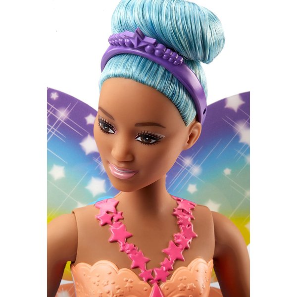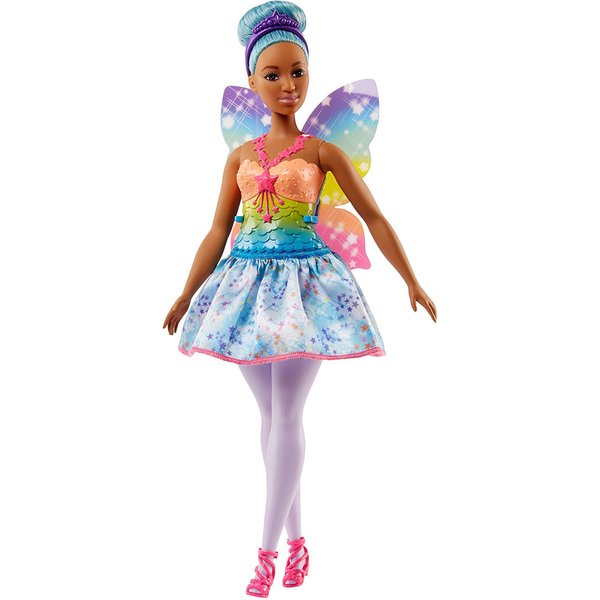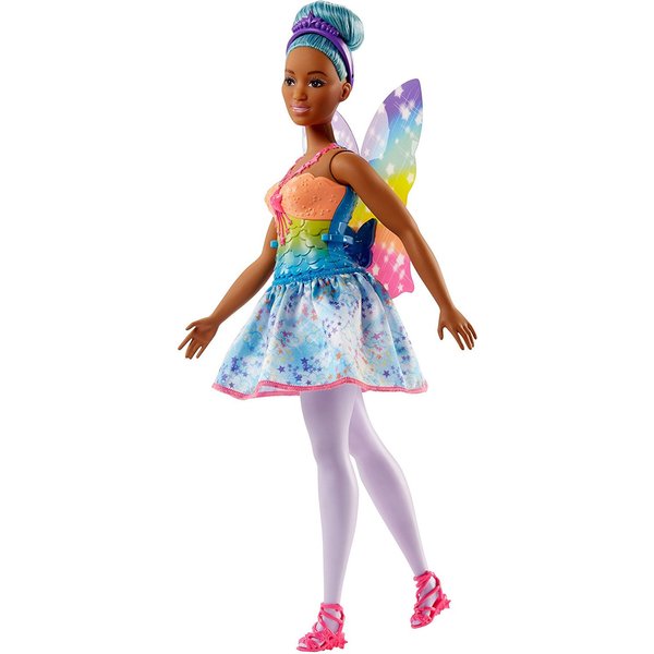 Urocza Barbie z Krainy Słodkości Dreamtopia ma piękne długie włosy, a na jej głowie znajduje się królewska tiara. Jak na wróżkę przystało ubrana jest w piękną suknię pełną kolorów a na plecach ma skrzydełka.