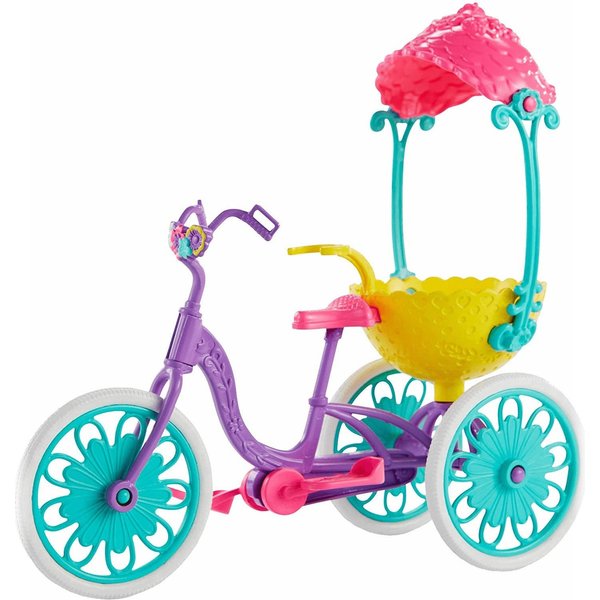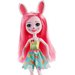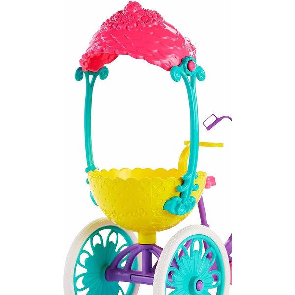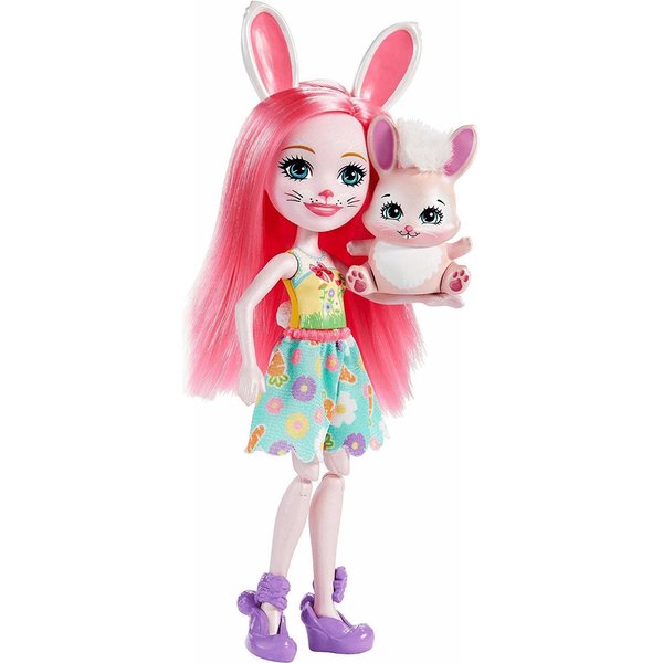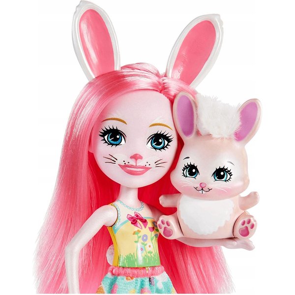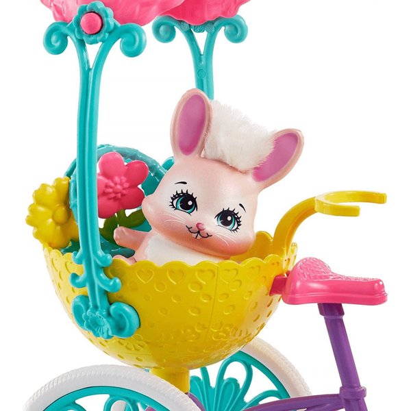 Lalka Enchantimals to kolejna z serii od Mattel. Są one bardzo związane ze swoimi małymi pupilkami. Chodzą ze sobą wszędzie. W tym zestawie lalka wraz ze swoim króliczkiem wyruszają w długą podróż swoim stylowym pojazdem. Będą mogli na nim zwiedzać świat i przeżywać wspaniałe przygody. Rower ten posiada specjalny koszyk dla zwierzątka, więc każdy odnajdzie swoje miejsce, a wycieczka nim będzie niezwykle komfortowa. Lalka ubrana w kolorową sukienkę i stylowe buty, a na głowie ma opaskę w królicze uszy.