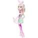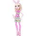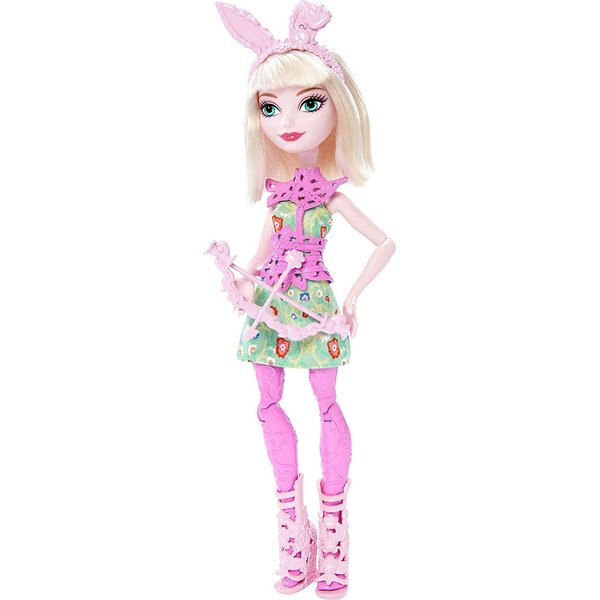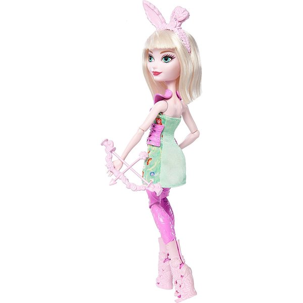 Bunny Blanc przygotowuje się do zawodów w łucznictwie. Wybierz się wraz z nią na trening, by poćwiczyć celne strzelanie! Lalka ma na sobie wzorzystą, magiczną spódniczkę oraz opaskę z uszkami króliczka, a na nogach ma piękne różowe buty na obcasie. Dodatkowo została wyposażona w łuk ze strzałą.