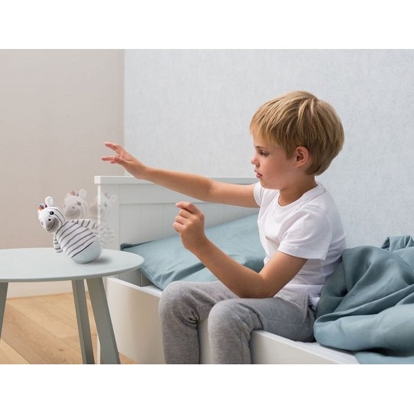 Tą rozbujaną lampkę nocną dziecko może obsługiwać bez pomocy rodziców i bez obaw, że się przewróci! Zebra chwieje się na boki jednak zawsze powraca do pozycji pionowej. Razem z dzieckiem będą się świetnie bawić, a gdy nadejdzie czas spania, rozświetli ona swój brzuszek, aby zapewnić maluchowi spokojny sen. Może ona świecić w 7 różnych kolorach, więc z pewnością dopasuje się pod każde wymagania. Po 30 minutach lampka zgaśnie, a dzięki temu, że się nie nagrzewa rodzic nie ma obaw, że dziecko się oparzy.