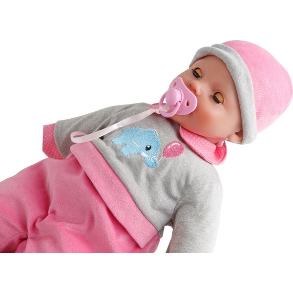 Mały bobasek ubrany jest w różowe śpioszki oraz czapeczkę - wygląda uroczo! Ruchome rączki i nóżki uatrakcyjniają zabawę, a dzięki mięciutkim materiałom sprawdzi się także jako przytulanka. Laura zamyka oczy, gdy się kładzie, gaworzy, płacze i wypowiada 1 słowa.