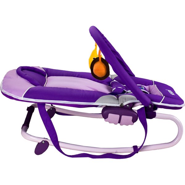 Praktyczny leżaczek z funkcją bujania, niezastąpiony podczas codziennej opieki nad dzieckiem. Wygodne, regulowane siedzisko i oparcie oraz absorbujące zabawki na pałąku odpowiadają za komfortowy odpoczynek dziecka, w trakcie którego rodzice mają czas dla siebie.