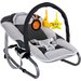 Praktyczny leżaczek z funkcją bujania, niezastąpiony podczas codziennej opieki nad dzieckiem. Wygodne, regulowane siedzisko i oparcie oraz absorbujące zabawki na pałąku odpowiadają za komfortowy odpoczynek dziecka, w trakcie którego rodzice mają czas dla siebie.