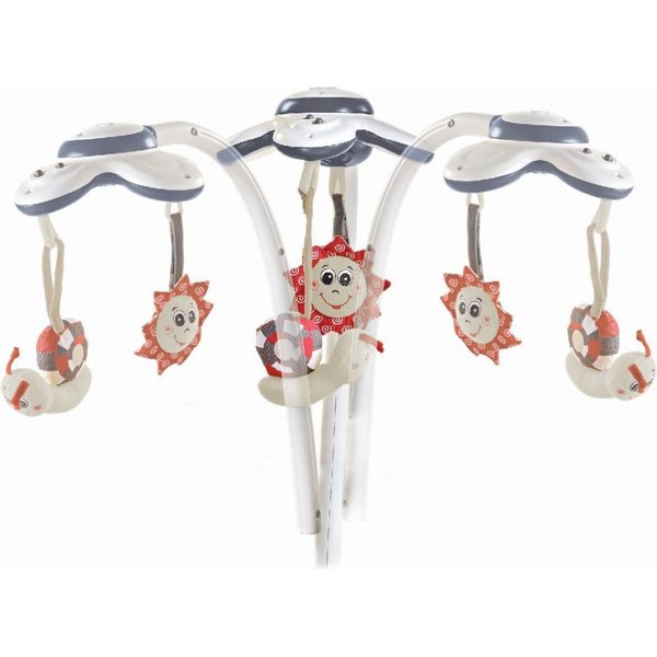 Atrakcyjnym dla dziecka elementem leżaczka jest zabawka świetlno-muzyczna na ruchomym ramieniu, która może zostać aktywowana przez dziecko. Zabawka posiada 7 melodii oraz dwa stopnie głośności. Dźwięk można ustawić w 3 trybach pracy: jako muzykę ciągłą zabawną lub kojącą oraz muzykę aktywowaną przez malucha której uruchomienie następuje, gdy malec chwyci jedną z wiszących zabawek.