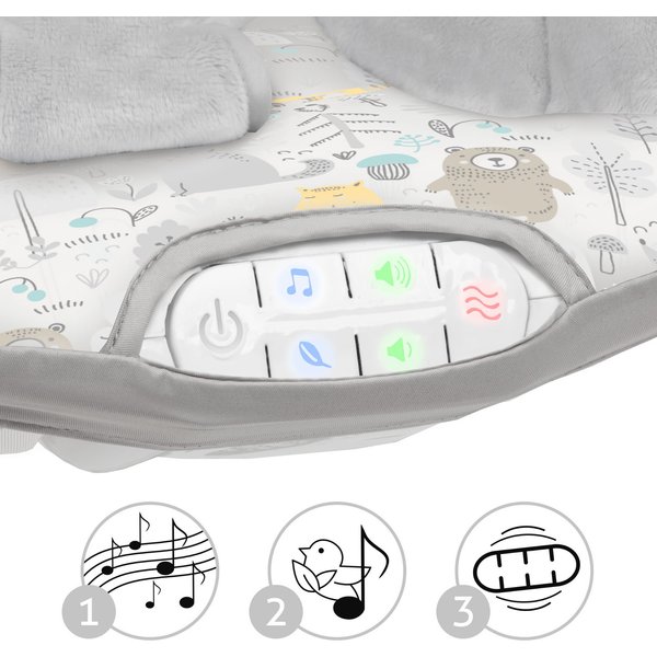 - moduł sensoryczny zawiera 10 przyjemnych melodii z regulacją głośności oraz wibracje, które działają uspokajająco na dziecko