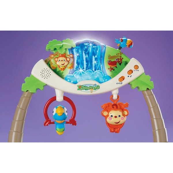Leżaczek pełen atrakcji z tropikalnego lasu to wesoła zabawa dla każdego dziecka. Maluch z pewnością doceni zabawę w tropikalnym stylu. Interaktywny pałąk zapewni atrakcję i zaciekawi malucha na bardzo długo. Na pałąku jest wodospad, kolorowe zwierzaki i wiele niespodzianek. W zależności od wyboru opcji pałąk może odgrywać melodie, odtwarzać dźwięki i wiele innych atrakcji. Leżaczek posiada funkcję wibracji, które uspokoją i zrelaksują maluszka.