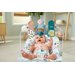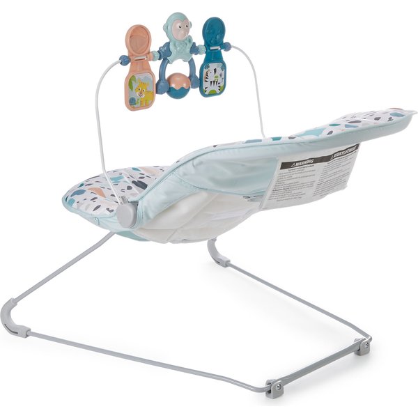 Leżaczek jest odpowiedni dla dziecka od urodzenia do osiągnięcia wagi 9 kg lub umiejętności samodzielnego siedzenia. Dzięki pasom bezpieczeństwa maluch może bezpiecznie odpoczywać lub bawić się, w zależności od potrzeb. Bezpieczeństwo zwiększają antypoślizgowe nóżki. Kojące wibracje uspokoją maluszka, a jeśli będzie miał ochotę na zabawę, to 3 zwierzątka wiszące na zdejmowanym pałąku już czekają na jego ruch! Jeśli leżaczek się pobrudzi, wystarczy zdjąć pokrycie siedziska i wyprać w pralce.