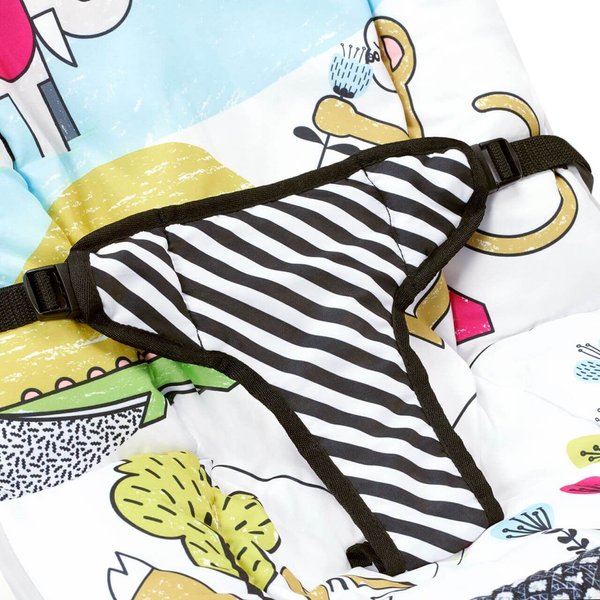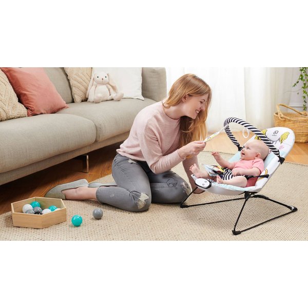 SMARTFUN sprawdzi się jako miejsce do relaksu, zabawy, spania i karmienia. Pałąk z atrakcyjnymi zawieszkami będzie przykuwać uwagę dziecka i zachęcać do trącania. Mięciutkie siedzisko o profilowanym kształcie otuli maluszka i ukoi do snu. Leżaczek posiada 3 stopnie wibracji oraz 8 melodyjek do wybory- te opcje pozwolą ukoić malucha i wprowadzić w stan błogiego snu.