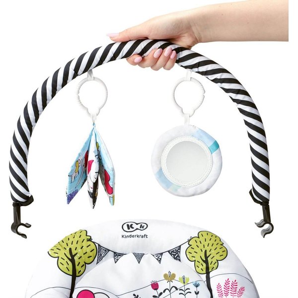 - pałąk z aktywnościami: szeleszcząca książeczka z historyjką i lusterkiem