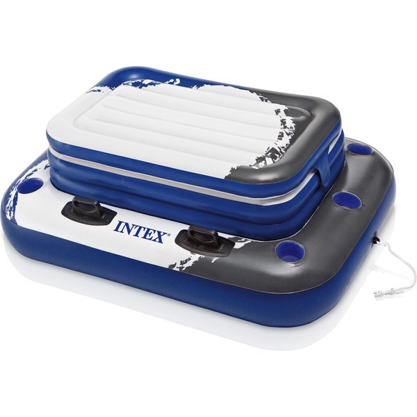 Za dużymi wymiarami stoi ogromna pojemność, model jest w stanie pomieścić aż 72 puszki z orzeźwiającym napojem o pojemności 330ml, znajdzie się w niej także miejsce na lód. Łatwe przenoszenie zapewniają 4 mocne uchwyty umożliwiające wygodne złapanie lodówki. Konstrukcja lodówki składa się z 3 komór powietrznych zapewniających stabilność na wodzie, a dołączona łatka naprawcza pomoże Wam zaradzić każdej awarii. Pływający barek posiada praktyczną linkę, która pozwoli Ci przymocować go w jednym miejscu by nie dryfował po wodzie.