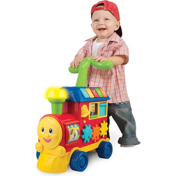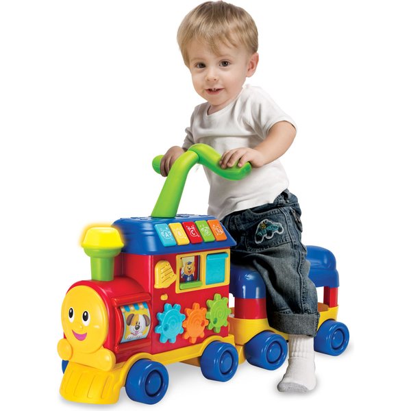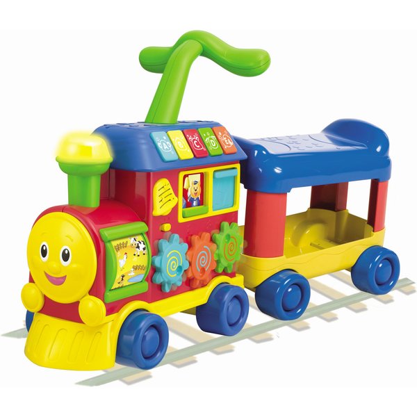 Zabawka rośnie wraz z dzieckiem, w pierwszym etapie będzie interaktywną lokomotywą dla siedzącego jeszcze, ciekawego świata maluszka. Następnie maluch może na niej usiąść i odpychając się nogami wykorzystać jako jeździk. Gdy zacznie pierwsze próby samodzielnego chodzenia lokomotywa będzie super pchaczem, dzięki któremu maluch dotrze w do tej pory nieodkryte zakątki w domu.