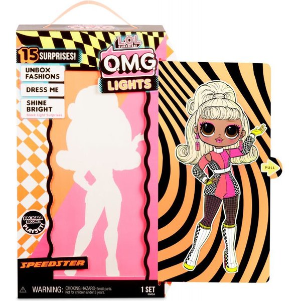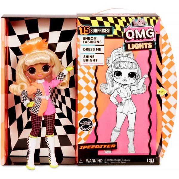 Kolejna zachwycająca nowość od LOL Surprise, a raczej olśniewająca! Seria Lights to większe siostry znanych laleczek. Posiadają one niesamowite, świecące elementy garderoby. Cały zestaw zawiera 15 niespodzianek, które dodadzą zabawie więcej emocji i radości. Stanową one różne akcesoria takie jak akcesoria modowe, buty, pudełko na kapelusz itp. Specjalna latarka ze światłem ultrafioletowym pozwoli oświetlić lalkę i odkryć jej tajemnice. Figurka posiada ruchome ręce, co z pewnością ułatwi jej ubieranie.