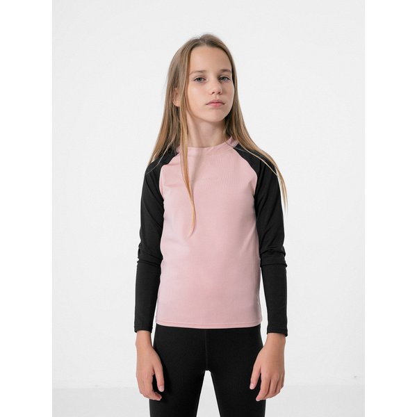 Longsleeve dziewczęcy HJZ22 JBIDD001 4F sprawdzi się doskonale podczas aktywności fizycznej oraz podczas zimy.