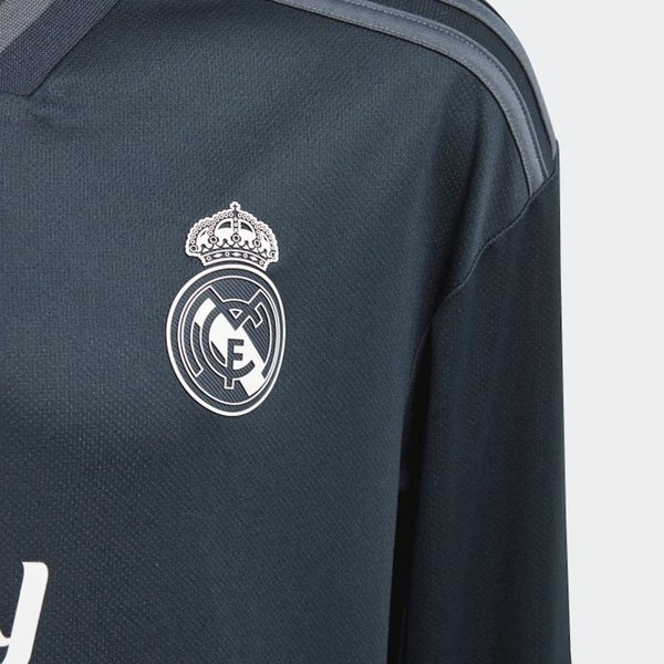 Wyjazdowa koszulka z długim rękawem Real Madryt marki Adidas to model dla młodych fanów hiszpańskiego klubu.