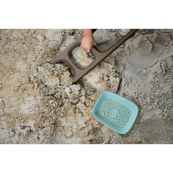 Łopatka z dołączony sitkiem od Quut to niezbędne wyposażenie podczas wyjazdu nad morze, prac w ogródku czy zabawy w śniegu. Jej oryginalny wygląd zachwyci każde dziecko, a lekkość i łatwość w obsłudze sprawią, że zabawa nią będzie niezwykle przyjemna. Sitkiem można bawić się osobno lub dołączyć do łopatki i używać jako zestaw. Maluch będzie mógł naśladować swoich rodziców używając nogi do jej obsługi, tak jak robią to dorośli z szuflą. Łopatka ta zapewni wiele godzin ciekawej zabawy na świeżym powietrzu, która pobudzi wyobraźnię i kreatywność.