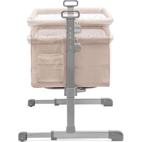 Łóżeczko dostawne Neste firmy Kinderkraft posiada regulowaną 5-stopniową wysokość (36 cm - 48 cm) co sprawia, że można go dopasować do wielkości naszego łóżka. Oprócz ustawienia wysokości, posiada ono również pasy, którymi można połączyć je z łóżkiem rodziców. Przed samoczynnym złożeniem chroni nas dodatkowe zabezpieczenie, które jest przyłączone do stalowej ramy. Zwijana ścianka łóżeczka sprawia, że nie ma problemu z dostępem do maluszka. Ścianka ta również posiada siateczkę przez, którą można obserwować dziecko. Jest ono wykonane z miłego materiału, które bardzo łatwo utrzymać w czystości. Jest to dobre wyjście dla osób, które chcą mieć maluszka zawsze przy sobie.