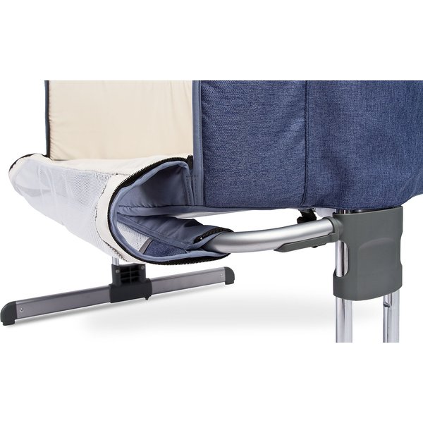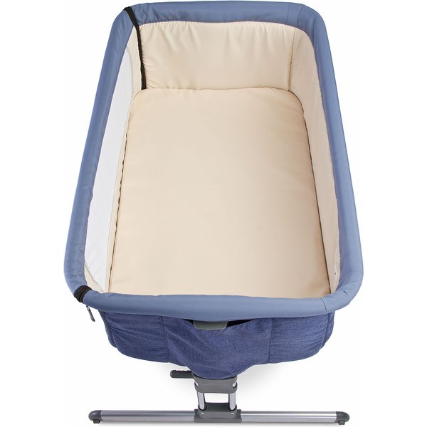 Łóżeczko wyposażono w prosty i bezpieczny system mocowania, który pozwala na solidne przypięcie łóżeczka do łóżka rodziców za pomocą dwóch pasów. Posiada 7 poziomów regulacji wysokości (20cm zakres), możliwość ustawienia łóżeczka pod pewnym nachyleniem wspomoże usypianie i uchroni przed ulewaniem. Kółka w nóżkach ułatwią przemieszczanie łóżeczka po powierzchni pokoju.