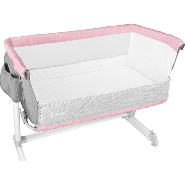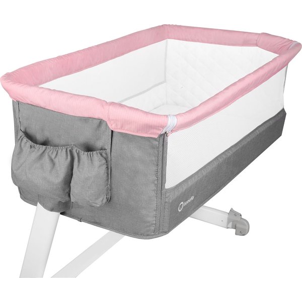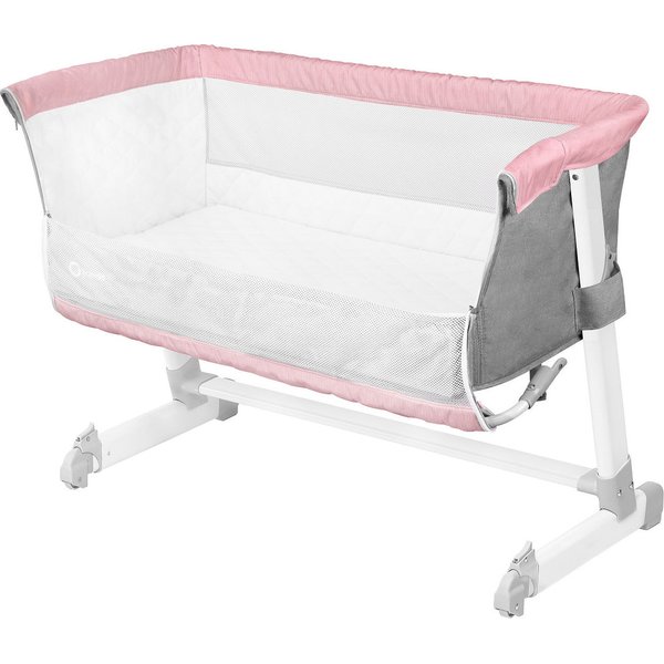 Łóżeczko wyposażono w prosty i bezpieczny system mocowania, który pozwala na solidne przypięcie łóżeczka do łóżka rodziców za pomocą dwóch pasów. Posiada 5-stopniową regulację wysokości , możliwość ustawienia łóżeczka pod pewnym nachyleniem wspomoże usypianie i uchroni przed ulewaniem. Kółka w nóżkach ułatwią przemieszczanie łóżeczka po powierzchni pokoju.