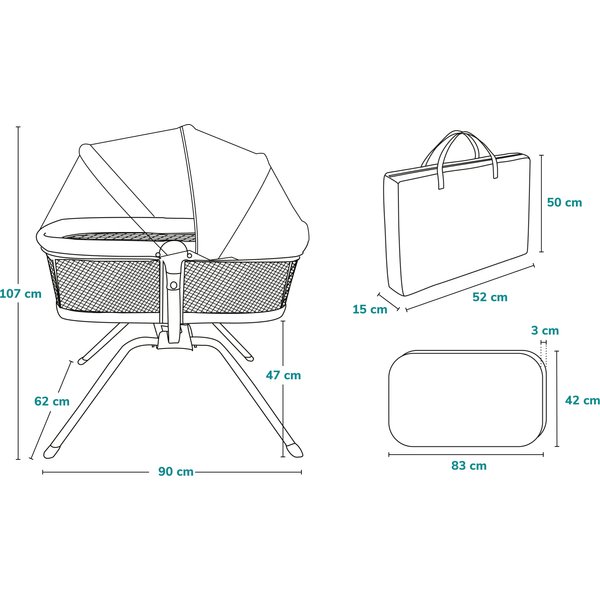 - funkcje: kołyska, łóżeczko turystyczne, łóżeczko dziecięce