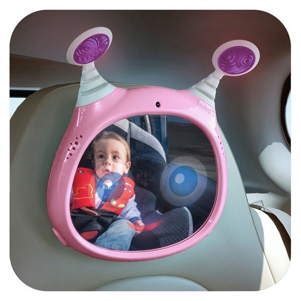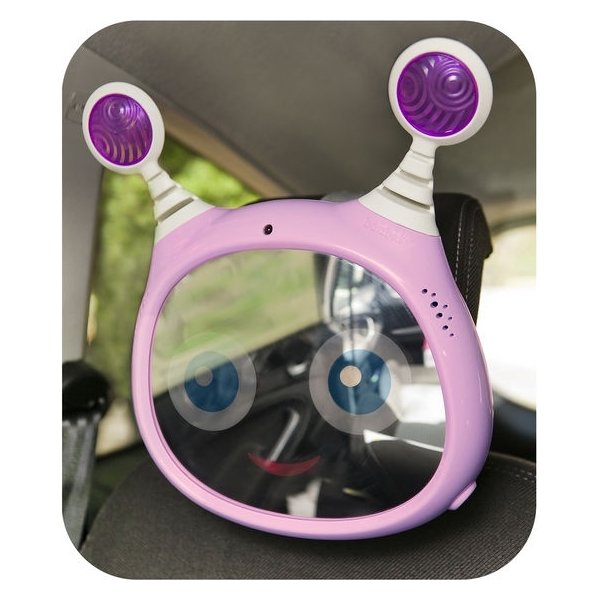 Urządzenie pełni funkcję standardowego lusterka samochodowego oraz interaktywnej zabawki. Duże wymiary lusterka gwarantują rodzicom bardzo dobrą widoczność ich pociechy, zaś kolorowe światełka, melodie oraz uśmiechnięta buzia stworka umilą podróż maluszkowi.