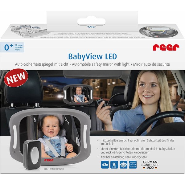Lusterko z lampką LED od Reer pozwala na spokojne prowadzenie samochodu, mając maluszka na oku. Montuje się go na zagłówku tylnego siedzenia za pomocą 2 pasków, które się krzyżują i zapobiegają zsuwaniu się go. Wykonany z plastiku, który się nie tłucze, więc w przypadku kolizji nie stanowi on zagrożenia. Przymocowane na przegubie kulowym co ułatwi jego ustawienie pod każdym kątem. Dodatkowo posiada pilot do sterowania co zdecydowanie sprawi, że użytkowanie go będzie przyjemniejsze, bez dodatkowego stresu.