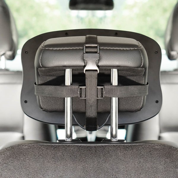 - Montaż na zagłówku tylnego siedzenia za pomocą 2 pasków,