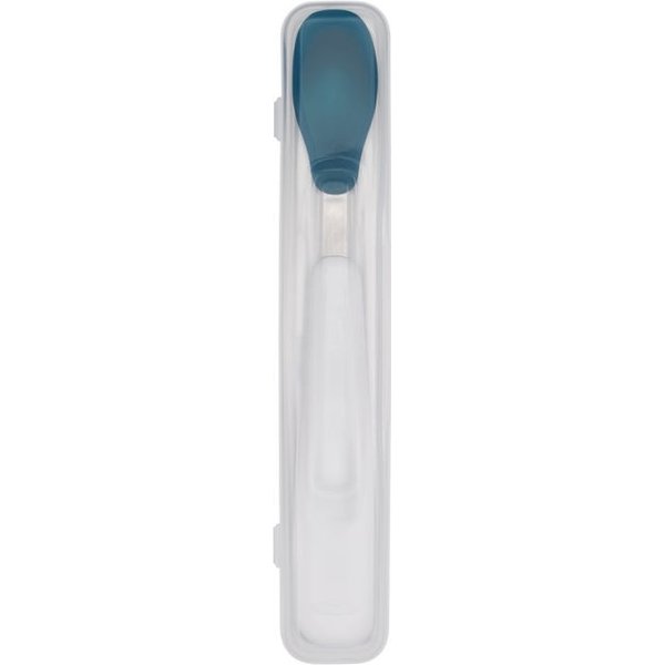 Łyżeczka w etui marki Oxo wykonana specjalnie dla dzieci, by pomóc im w spożywaniu pierwszych posiłków. Łyżeczka jest wykonana z miękkiego silikonu, dzięki czemu jest bezpieczna dla delikatnych dziąseł dziecka.