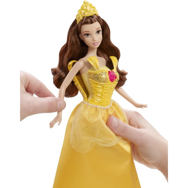 Teraz księżniczki gotowe są na prawdziwy bal - będą na mi błyszczeć podczas kręcenia piruetów. Błyszcząca suknia zapinana jest na klips. Została stworzona z myślą o księżniczce, w charakterystycznej kolorystyce - jak z bajki!
