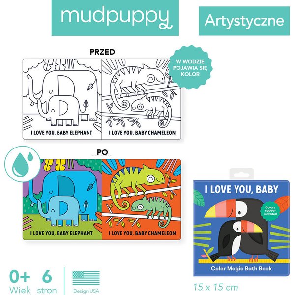 Magiczna książeczka do kąpieli „Kocham cię, mój maluszku” Mudpuppy to zaskakująca zabawka, która ujawnia swój prawdziwy wygląd dopiero po zanurzeniu w wodzie!