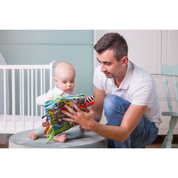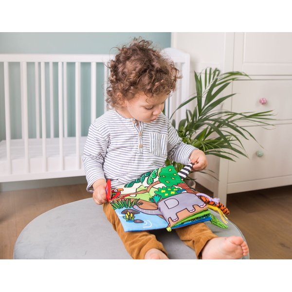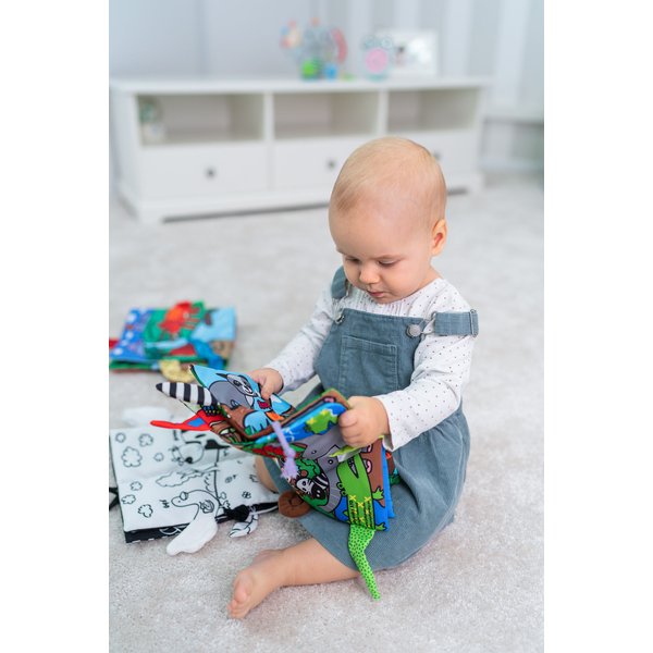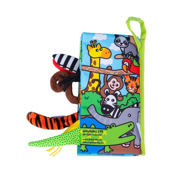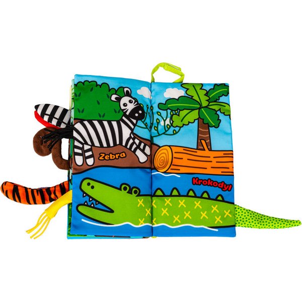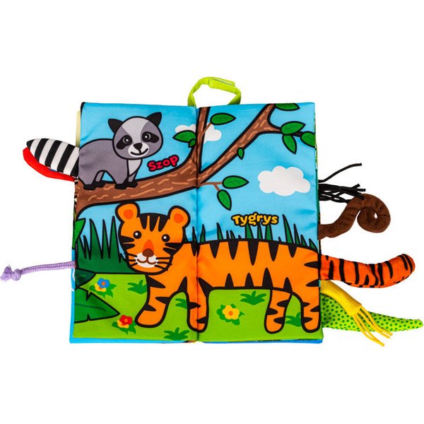 Miękka książeczka od Jolly Baby, która przedstawia dzikie zwierzątka. Każde z nich posiada wystający ogon o pięknej zróżnicowanej fakturze, co pozwoli stymulować zmysł dotyku. Z pewnością zaciekawią one maluszka i zachęcą do wspaniałej zabawy. Dodatkowo posiada ona szeleszczącą okładkę. Specjalny uchwyt na rzep pozwoli zamocować ją w dowolnie wybranym miejscu co sprawia, że może nam towarzyszyć wszędzie.