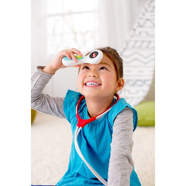 Ulepszony na prośbę mam zestaw medyczny zawiera lekarską torbę z miękkiego materiału, dzięki czemu wszystkie potrzebne przyrządy wygodnie się w niej mieszczą. Stetoskop naprawdę działa: można za jego pomocą usłyszeć bicie serca! Jest też termometr - naciśnij przycisk, a zmieni temperaturę! Przedszkolaki uwielbiają bawić się w lekarza, a teraz odkryją mnóstwo nowych sposobów na tę zabawę.