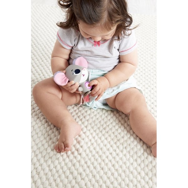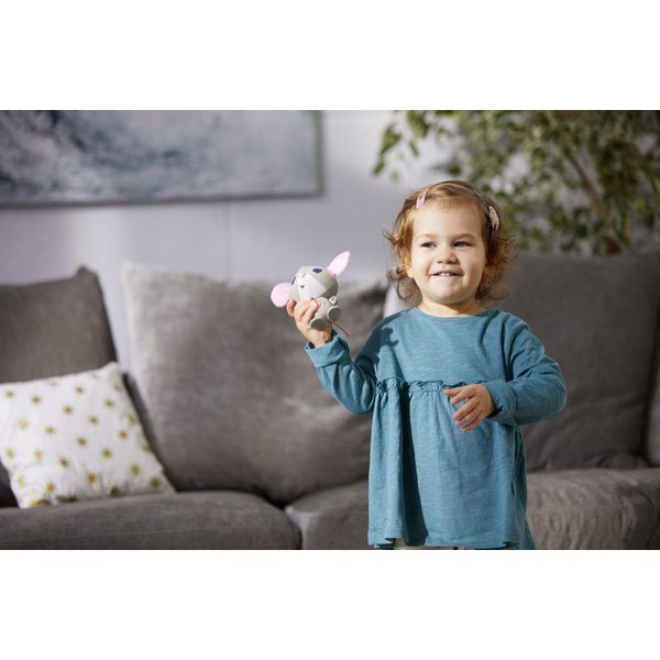 Urocza myszka chętnie będzie poznawała świat razem z dzieckiem, pomagając mu w zdobywaniu nowych umiejętności, które są nieodłącznym elementem dorastania. Zabawka została zaprojektowana w taki sposób, aby maluch nie miał problemu z utrzymaniem jej w ręku i mógł w swobodny sposób rozwijać zdolności samodzielnego poruszania. Jednak bycie najlepszym przyjacielem to nie jedyne co wyróżnia to małe stworzonko. Zostało one wyposażone w wiele elementów, które pomagają mu sprawić, że szybko poprawi humor.