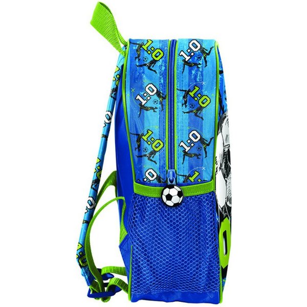 Mały szkolny plecak od Paso dla miłośników piłki nożnej! Z takim ekwipunkiem dziecko chętnie będzie chodziło do szkoły. Wyposażony w jedną komorę zapinaną na zamek, która pozwoli bezpiecznie przechować zawartość. Boczna kieszonka wykonana z siatki bez problemu przechowa butelkę czy bidon na napój. Regulacja szelek pozwoli dopasować rozmiar idealnie do wzrostu dziecka, a miękki materiał, którym zostały pokryte zapewni odpowiedni komfort. Plecak można skompletować z innymi akcesoriami szkolnymi, a będzie on świetnym rozwiązaniem za szkolną wycieczkę czy zajęcia pozalekcyjne.