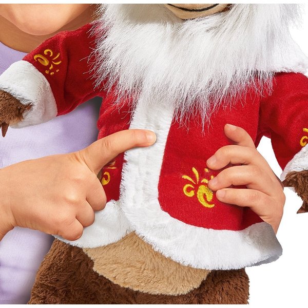 Miś przebrał się za Świętego Mikołaja! Ma długą białą brodę, płaszcz i czapkę w charakterystycznych kolorach - wygląda dokładnie jak Mikołaj. Dodatkowo po naciśnięciu na lewą łapkę zaczyna śpiewać świąteczną piosenkę - ale frajda!