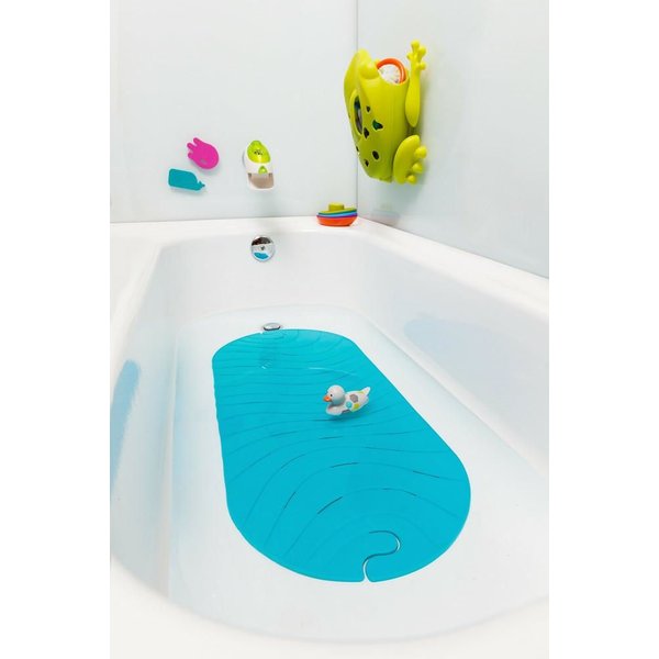 Antypoślizgowa mata do wanny ochroni dziecko przed niefortunnym poślizgnięciem. Zewnętrzna strona maty wykonana jest z miękkiego materiału, przyjemnego dla dziecka. Po wewnętrznej stronie znajdują się przyssawki za pomocą których można przymocować mate do powierzchni wanny. Dodatkowo mata posiada specjalne otwory, które odprowadzają wodę oraz hak, na którym możemy zawiesić matę, aby ociekła z wody.