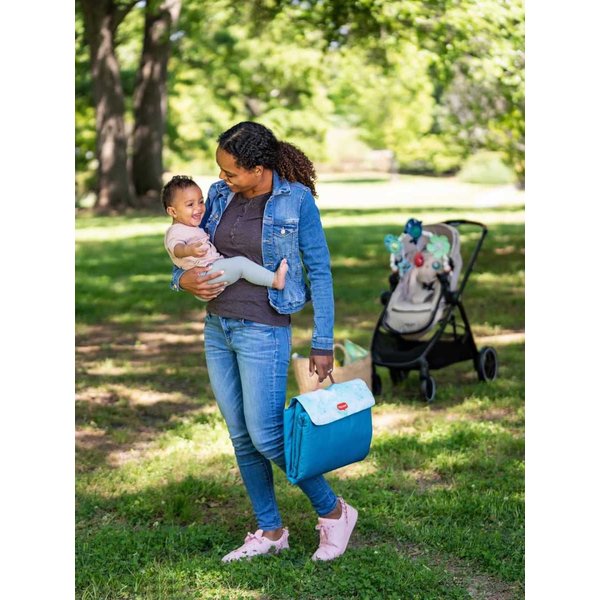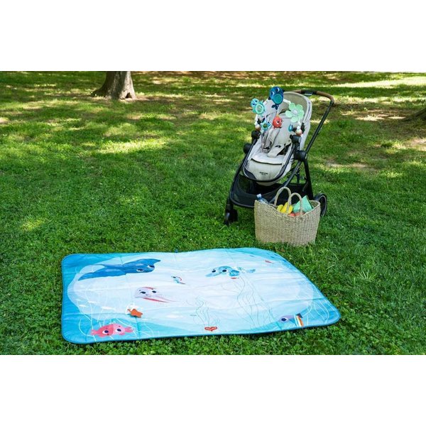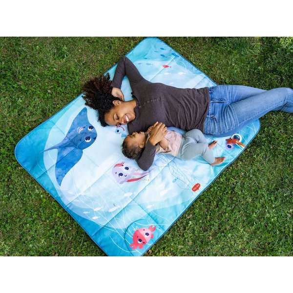 Wielofunkcyjna mata z łatwością może zastąpić kocyk lub matę do przewijania. To doskonałe miejsce do zabawy maluszka z rodzicami lub starszym rodzeństwem. Duży rozmiar pomieści wszystkich uczestników zabawy! Ciekawa kolorystyka i zabawki, inspirowane podwodnym światem szybko przyciągną wzrok Twojego maluszka, inspirując do zabawy i ciągłego doskonalenia zdolności motorycznych i sensorycznych. Mięciutka mata może stać się bezpiecznym miejscem do zabawy, pierwszych prób przekręcania się na brzuszek a nawet siadania i raczkowania.