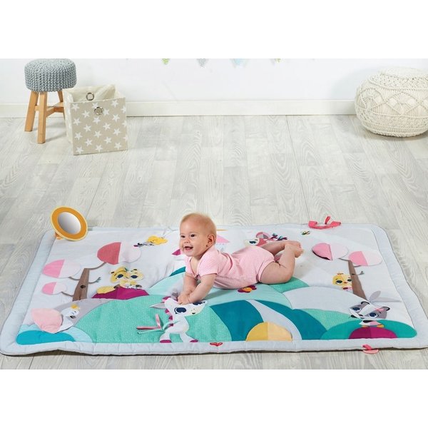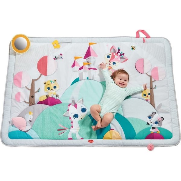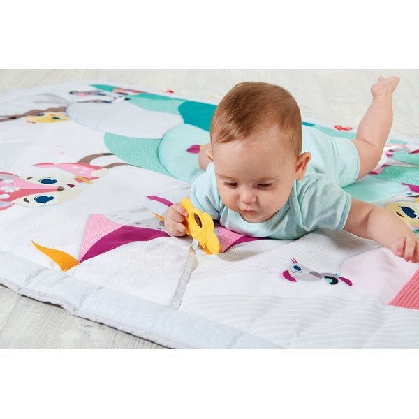 Interaktywna mata - Świat małej księżniczki marki Tiny Love to produkt, który idealnie nada się dla maluszka, który poznaje świat i rozwija swoje umiejętności ruchowe oraz zmysłowe. Jest to jedna z większych mat tej marki, która dzięki swojemu dużemu rozmiarowi zapewni bezpieczeństwo maluszkowi i pozwoli na pełną swobodę ruchów. Mata Tiny Love zachęca do aktywności wzrokowo-ruchowej oraz stymuluje zmysły. Matę możemy prać w pralce, dlatego dziecko będzie mogło bawić się na czystym i pachnącym podłożu.