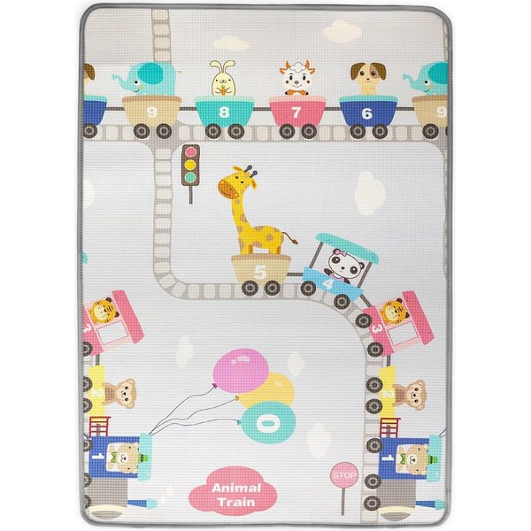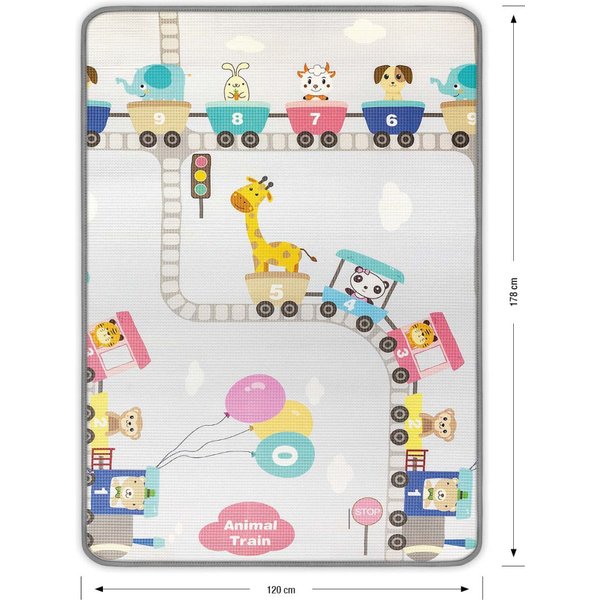 Mata jest dwustronna, dzięki czemu możesz ją zmieniać w zależności od tego, co aktualnie bardziej podoba się dziecku. Zapięcie na rzep umożliwi zwinięcie maty w rulon i zabranie jej w krótszą lub dłuższą podróż. Matę należy użytkować na płaskich powierzchniach w domu i w plenerze.