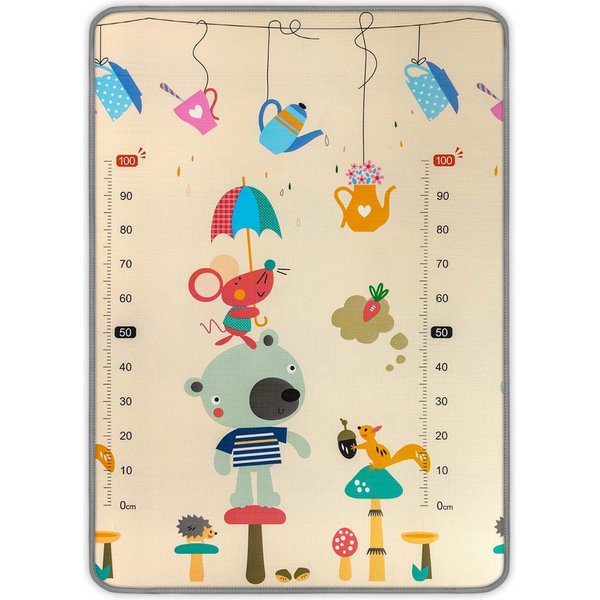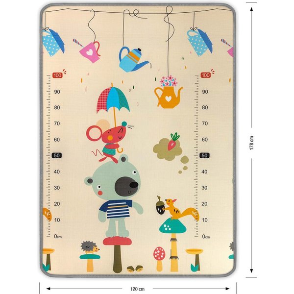 Mata jest dwustronna, dzięki czemu możesz ją zmieniać w zależności od tego, co aktualnie bardziej podoba się dziecku. Zapięcie na rzep umożliwi zwinięcie maty w rulon i zabranie jej w krótszą lub dłuższą podróż. Matę należy użytkować na płaskich powierzchniach w domu i w plenerze.