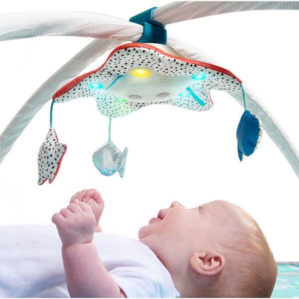 - urocze zabawki inspirowane oceanem, bezpieczne lusterko, elementy świecące i grające pozytywnie wpływają na rozwój maluszka,