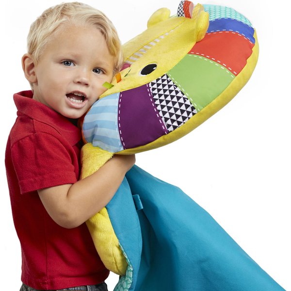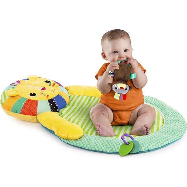 Mata wykończona jest grubą, niezwykle komfortową poduszką w kształcie lwa, która została dołączona do maty na stałe.