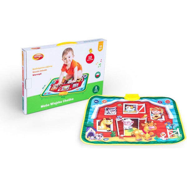 Interaktywna mata przedstawiająca zwierzaki mieszkające na wsi! Wyposażona została w wierszyki i odgłosy uroczych postaci. Razem z farmerem możesz zwiedzić jego farmę i poznać niezwykłe stworzonka, które na co dzień się po niej poruszają. Wystarczy nacisnąć poszczególne obrazki, a odkryjemy niespodzianki znajdujące się na macie. Posiada ona również regulację głośności pozwoli dopasować jej poziom do własnych potrzeb.