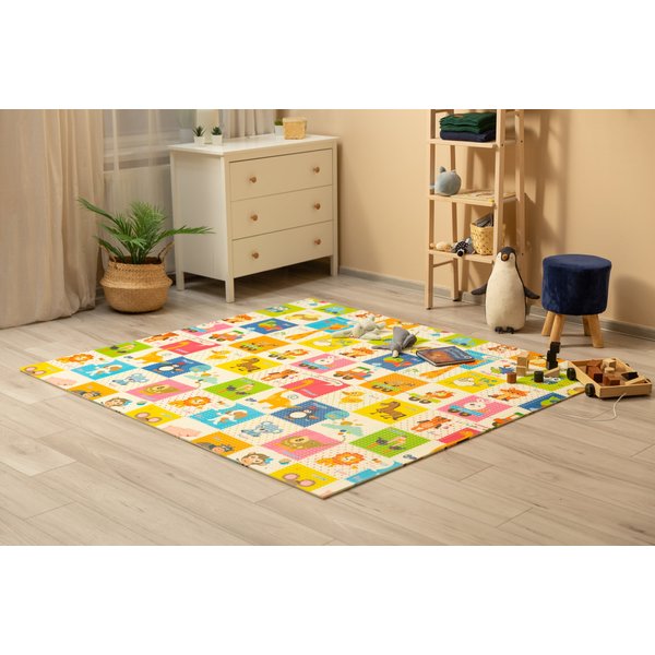 Model ten został wykonany z nietoksycznej pianki XPE o grubości 1 cm. Zapewnia to doskonałą amortyzację od zimnej podłogi, ochroni maluszka przed nieprzyjemnymi skutkami upadków podczas nauki chodzenia a dzięki atrakcyjnemu, dwustronnemu nadrukowi będzie stanowiła świetną dekorację w pokoiku. Mata ma właściwości antypoślizgowe - trudno ją przesunąć, co oznacza, że Twój maluszek jest bezpieczny podczas prób chodzenia. Duże wymiary maty i możliwość jej złożenia to kolejne zalety produktu.
