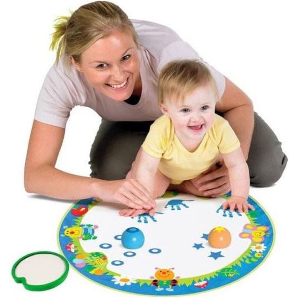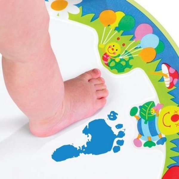 dziecko może odciskać rączki, stópki lub namoczone stemple na macie, po pewnym czasie wszystko wysycha - i rysunek znika, a zabawę rozpoczynamy od nowa!