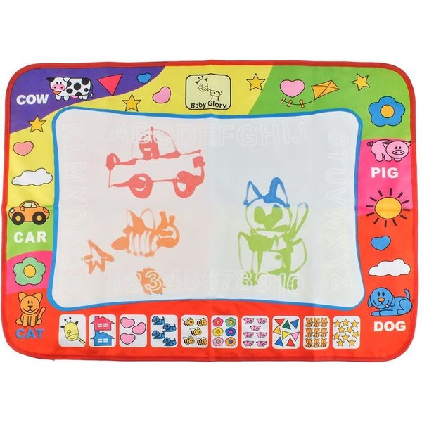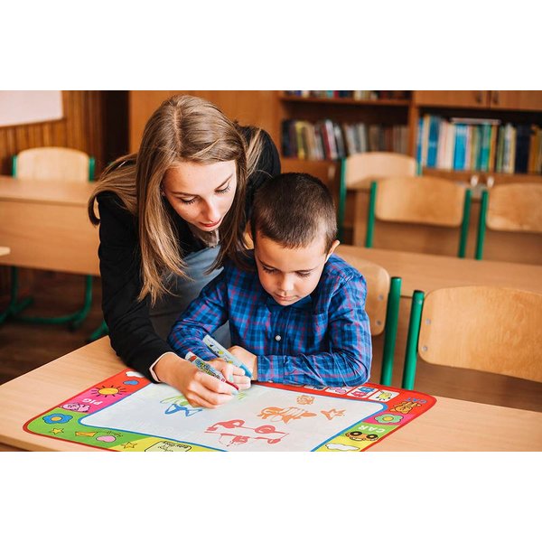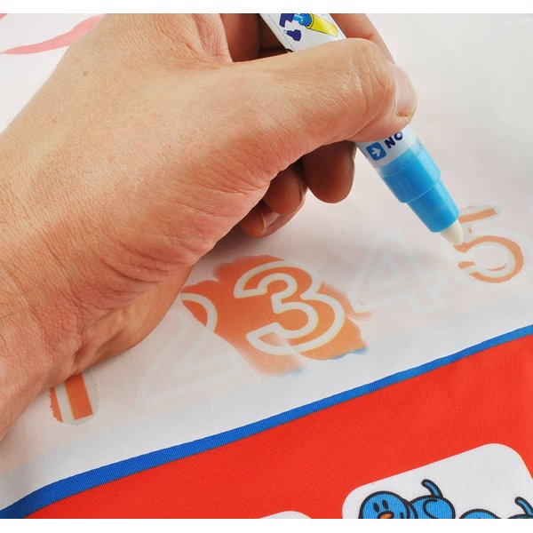 Mata wodna to wspaniała alternatywa dla zabaw z farbkami. Pozwala na zachowanie czystości podczas dziecięcej twórczości. Maluch będzie mógł uwolnić swoją kreatywność i wyobraźnię bez obaw, że ubrudzi wszystko dookoła. Możliwość uzupełniania mazaków wodą pozwala na długą zabawę. Dziecko będzie mogło rysować w 4 kolorach: zielonym, czerwonym, pomarańczowym i niebieskim. Mata wykończona została kolorowymi nadrukami, które przyciągną wzrok maluszka. Posiada kompaktowe wymiary i jest łatwa do przechowywania. Wodoodporny spód maty zapewni odpowiednią ochronę.