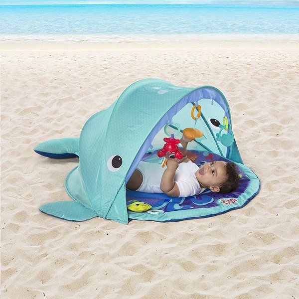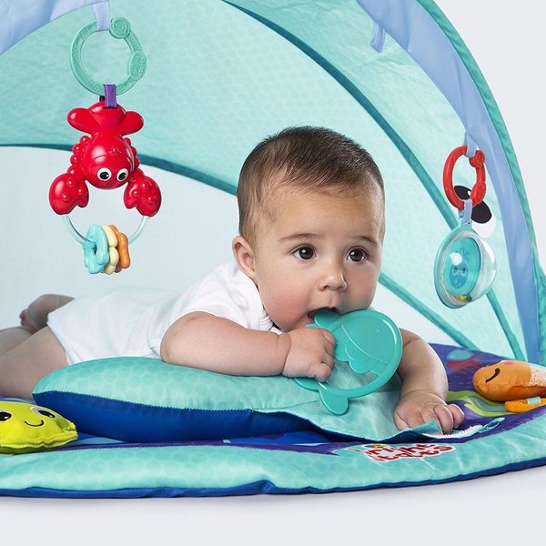Mata z namiocikiem marki Bright Starts to produkt wielofunkcyjny, który sprawdzi się nie tylko w domu, ale również w ogrodzie czy w podróży.