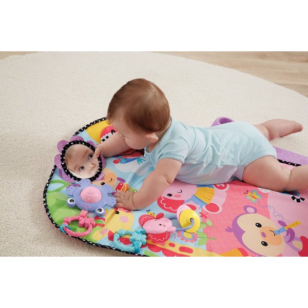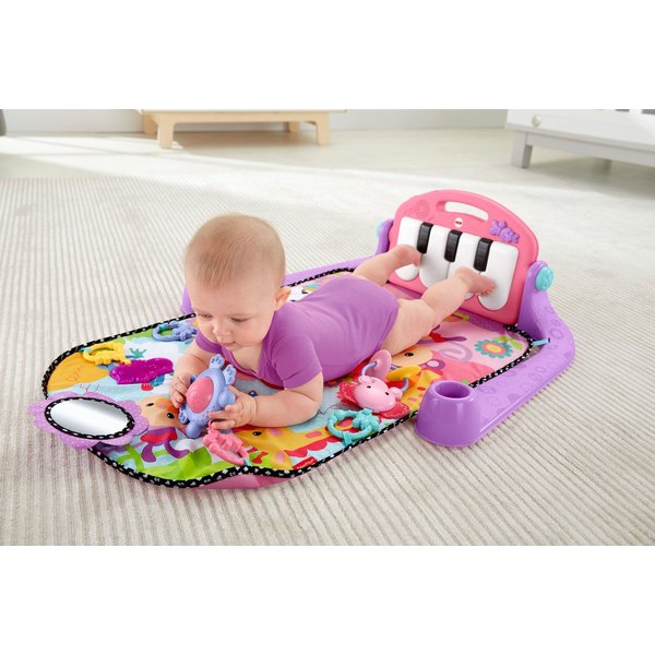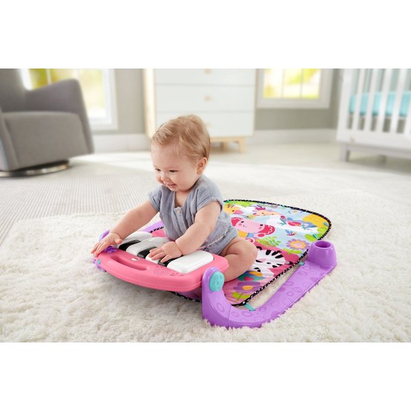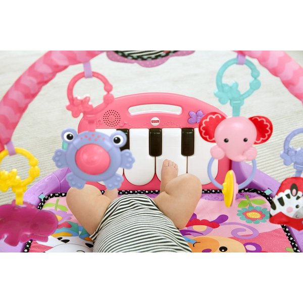 Mata umożliwia wydobywanie dźwięków nóżkami lub rączkami, dzięki czemu jeszcze lepiej pobudza całe ciało dziecka. Zabawka pozwala na wiele rodzajów aktywności, oferując dziecku zabawę dostosowaną do jego aktualnych sprawności lub chęci. Maluszek kopie nóżkami, wesoło gra muzyka. A to dopiero początek. Ruchome zabawki na łuku ponad głową zachęcają dziecko do uderzania i chwytania ich. Przewieś zabawki na matę, aby dziecko mogło bawić się na brzuszku lub pozwól maluszkowi usiąść i grać dla Ciebie na pianinku.