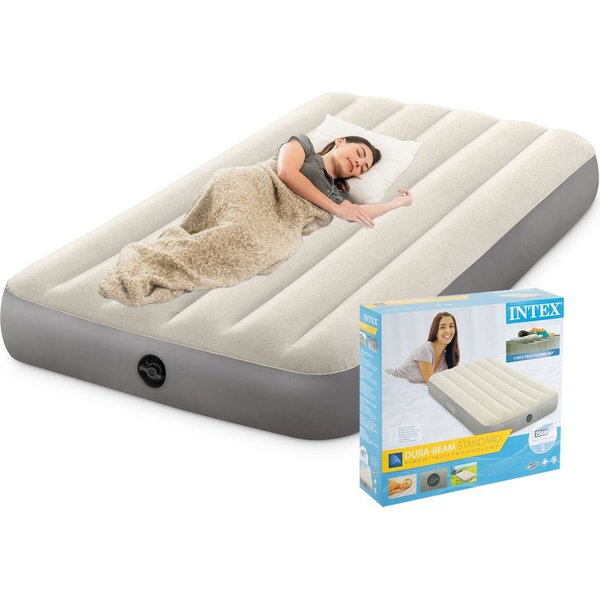 Materac dmuchany Standard stworzony przez markę Intex to nie tylko wysoka wygoda, ale również elegancki design, który może dopełnić Twoją sypialnię lub pokój wypoczynkowy. Wyjątkowo lekki, ponieważ jego waga wynosi jedynie 3kg, a do tego wytrzymały, ponieważ posiada wysoką odporność na uszkodzenia i szybkie zużycie.
