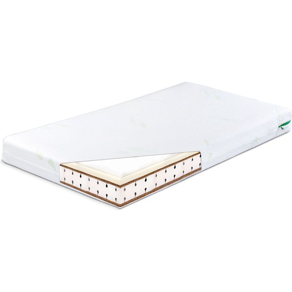 - Wypełniony pianką termoelastyczną (2cm), dwoma matami kokosowymi(grubość 2x1cm), włókniną puszystą i miękką pianką (grubość 6 cm)